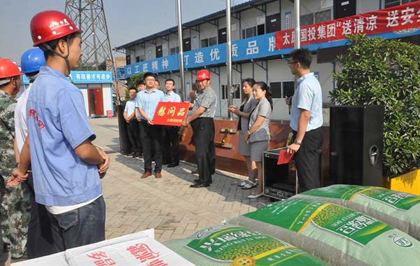 為切實(shí)維護(hù)高溫期間廣大基層職工的身體健康,改善職工的生產(chǎn)生活條件,提高職工的生產(chǎn)生活水平,切實(shí)保障職工的合法權(quán)益,市總工會(huì)決定在全市開展“情系職工 清涼一夏”慰問活動(dòng)。集團(tuán)公司積極響應(yīng)市總工會(huì)的指示精神,開展“送清涼、送安全、送健康”主題慰問活動(dòng),由集團(tuán)公司黨委書記馮澤亭,紀(jì)委書記、工會(huì)副主席楊柳以及集團(tuán)公司工會(huì)各委員組成慰問組前往施工生產(chǎn)一線看望一線的員工和農(nóng)民工兄弟,關(guān)愛一線職工,助力項(xiàng)目生產(chǎn),督促安全質(zhì)量。