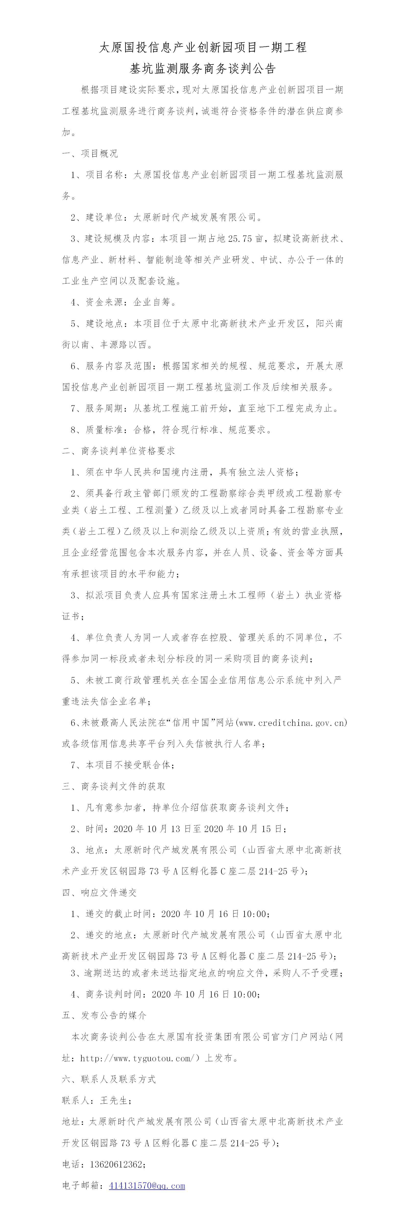 太原國(guó)投信息產(chǎn)業(yè)創(chuàng)新園項(xiàng)目一期工程基坑監(jiān)測(cè)服務(wù)商務(wù)談判公告