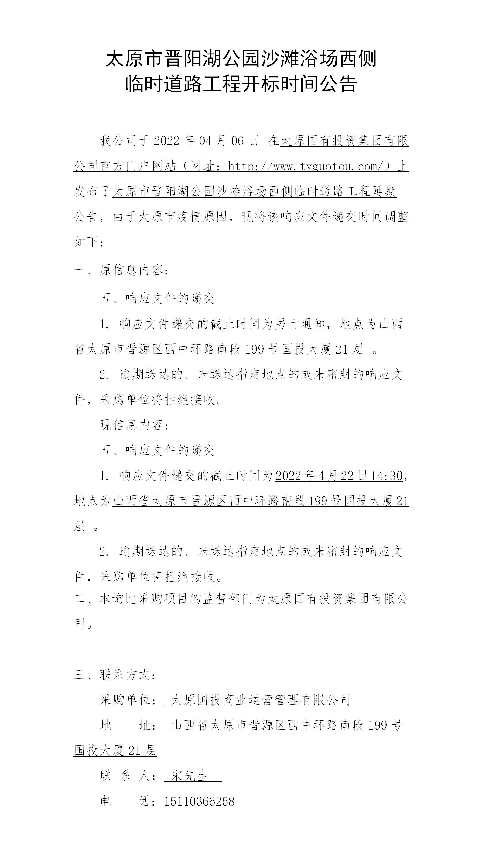 晉陽湖公園沙灘浴場西側(cè)臨時道路工程開標(biāo)時間公告