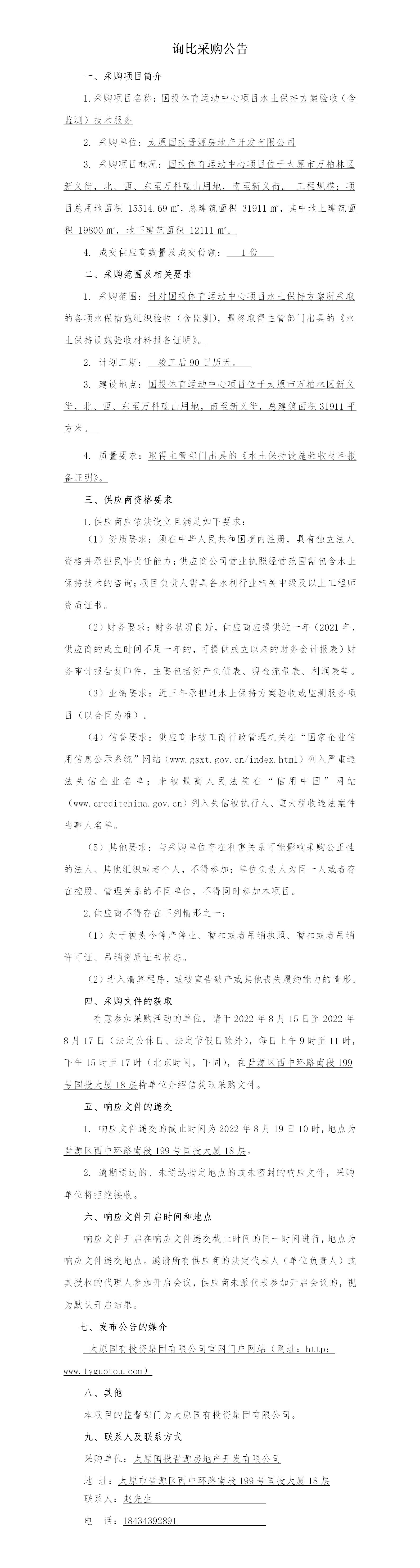 國(guó)投體育運(yùn)動(dòng)中心項(xiàng)目水土保持方案驗(yàn)收(含監(jiān)測(cè))技術(shù)服務(wù)詢比采購(gòu)公告