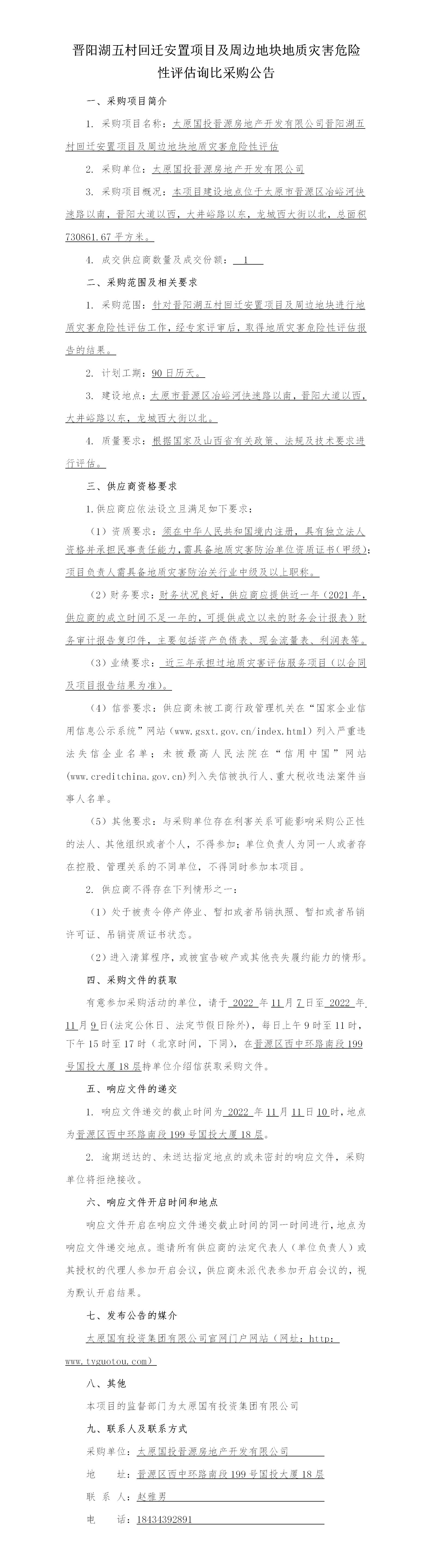 晉陽湖五村回遷安置項目及周邊地塊地質(zhì)災害危險性評估詢比采購公告