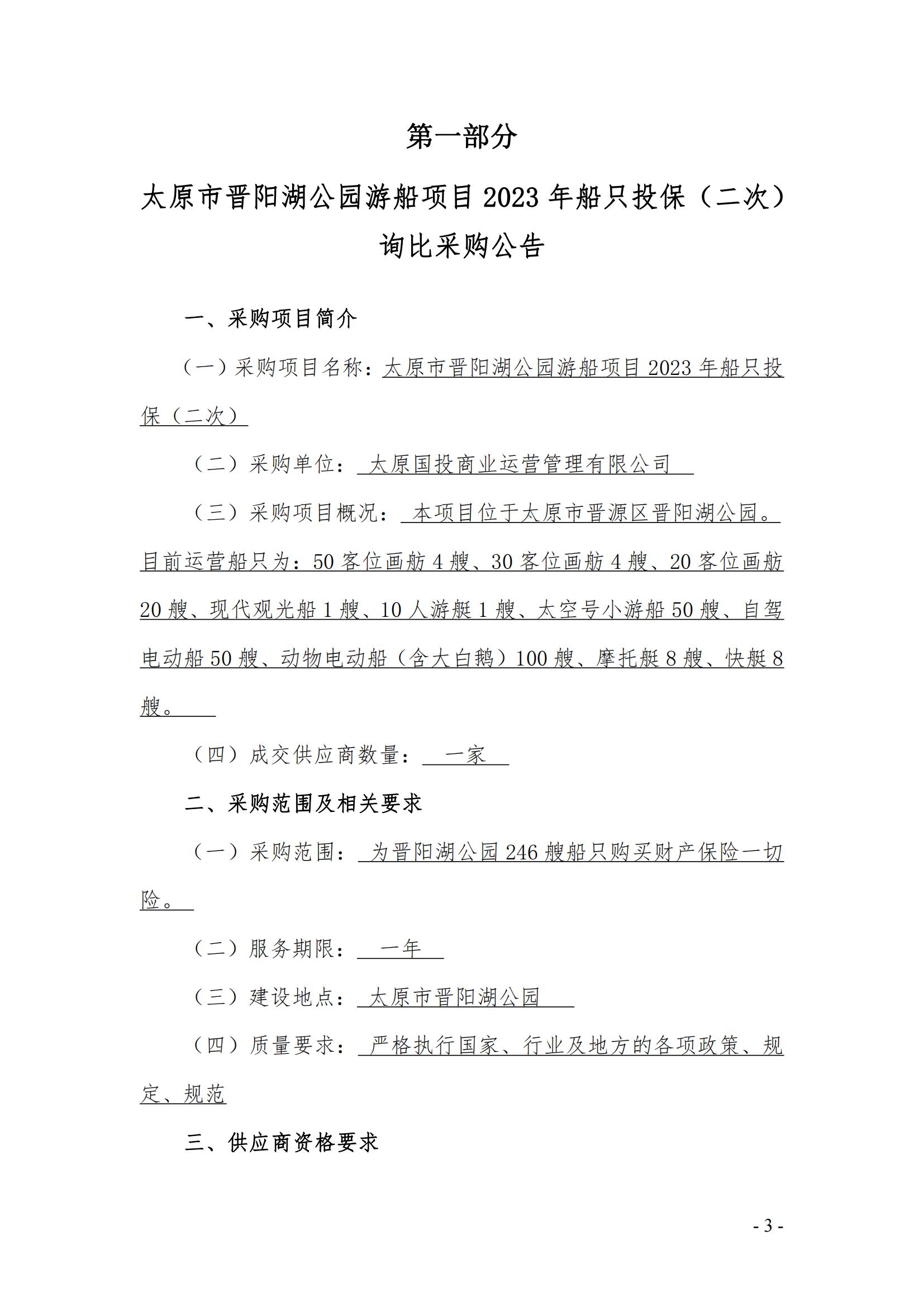 太原市晉陽湖公園游船項(xiàng)目 2023年船只投保(二次)