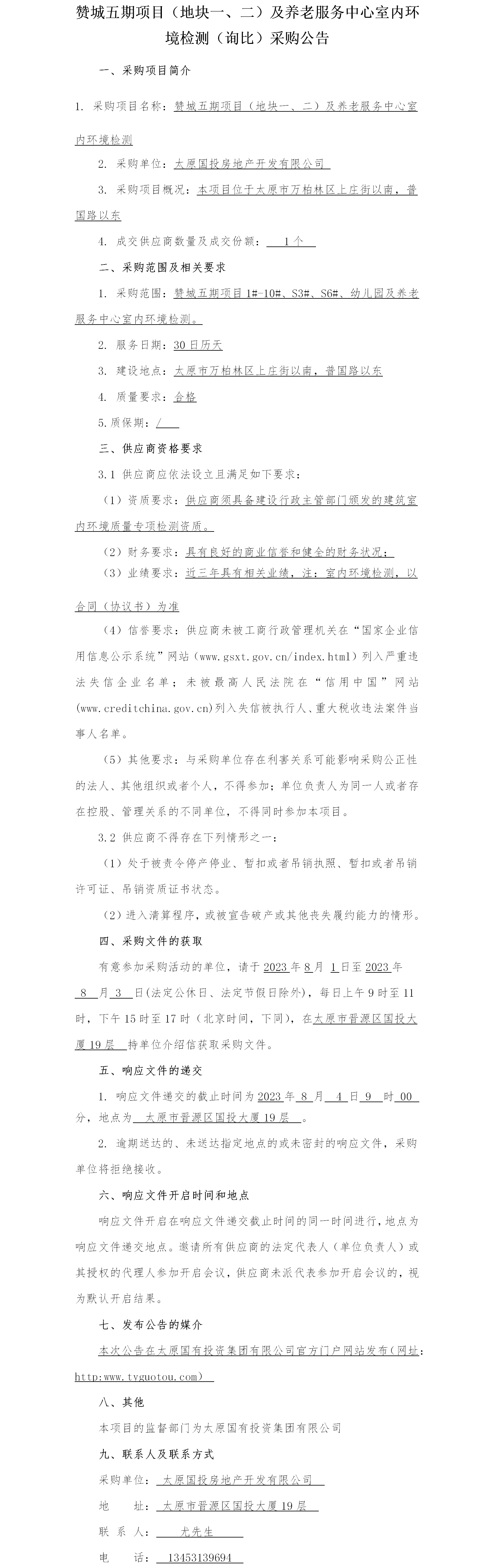 贊城五期項(xiàng)目(地塊一、二)及養(yǎng)老服務(wù)中心室內(nèi)環(huán)境檢測(cè)(詢比)采購(gòu)公告
