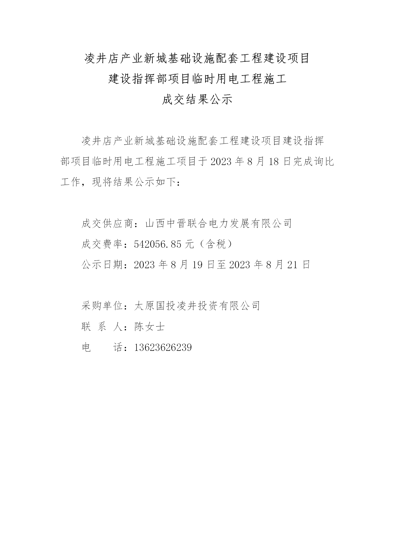 凌井店產(chǎn)業(yè)新城基礎(chǔ)設(shè)施配套工程建設(shè)項目建設(shè)指揮部項目臨時用電工程施工成交結(jié)果公示