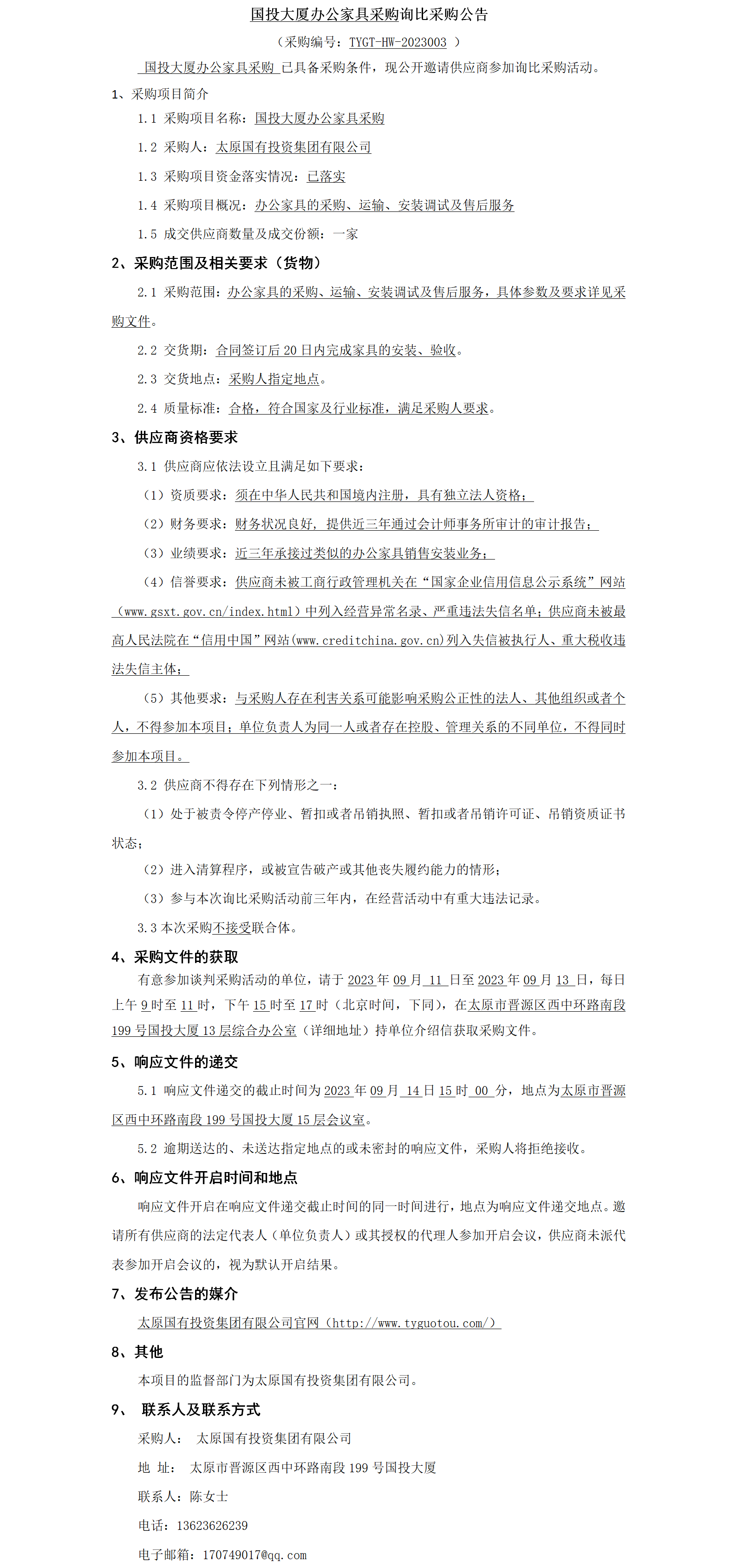 國(guó)投大廈辦公家具采購(gòu)詢比采購(gòu)公告