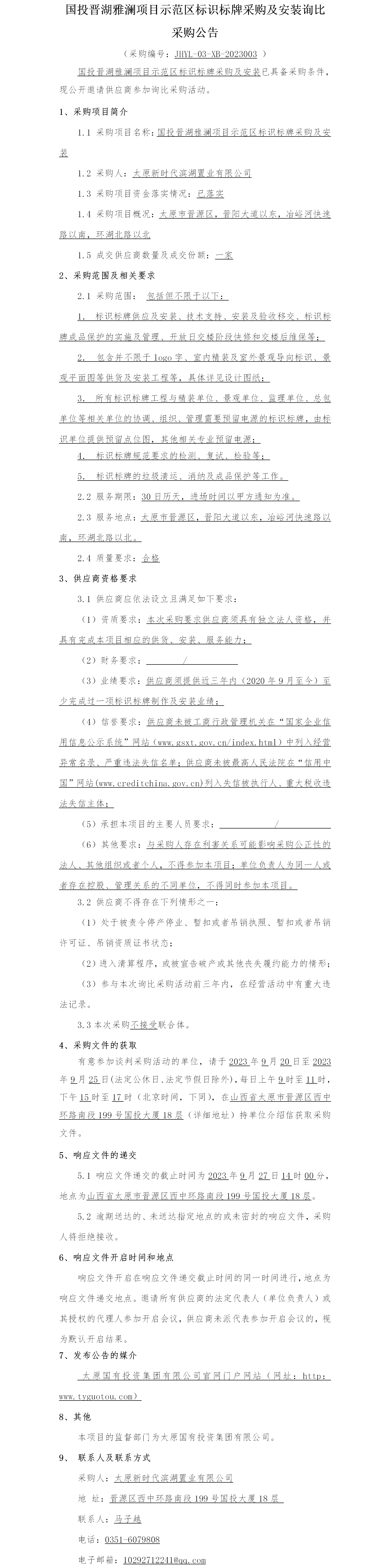 國(guó)投晉湖雅瀾項(xiàng)目示范區(qū)標(biāo)識(shí)標(biāo)牌采購(gòu)及安裝詢(xún)比采購(gòu)公告