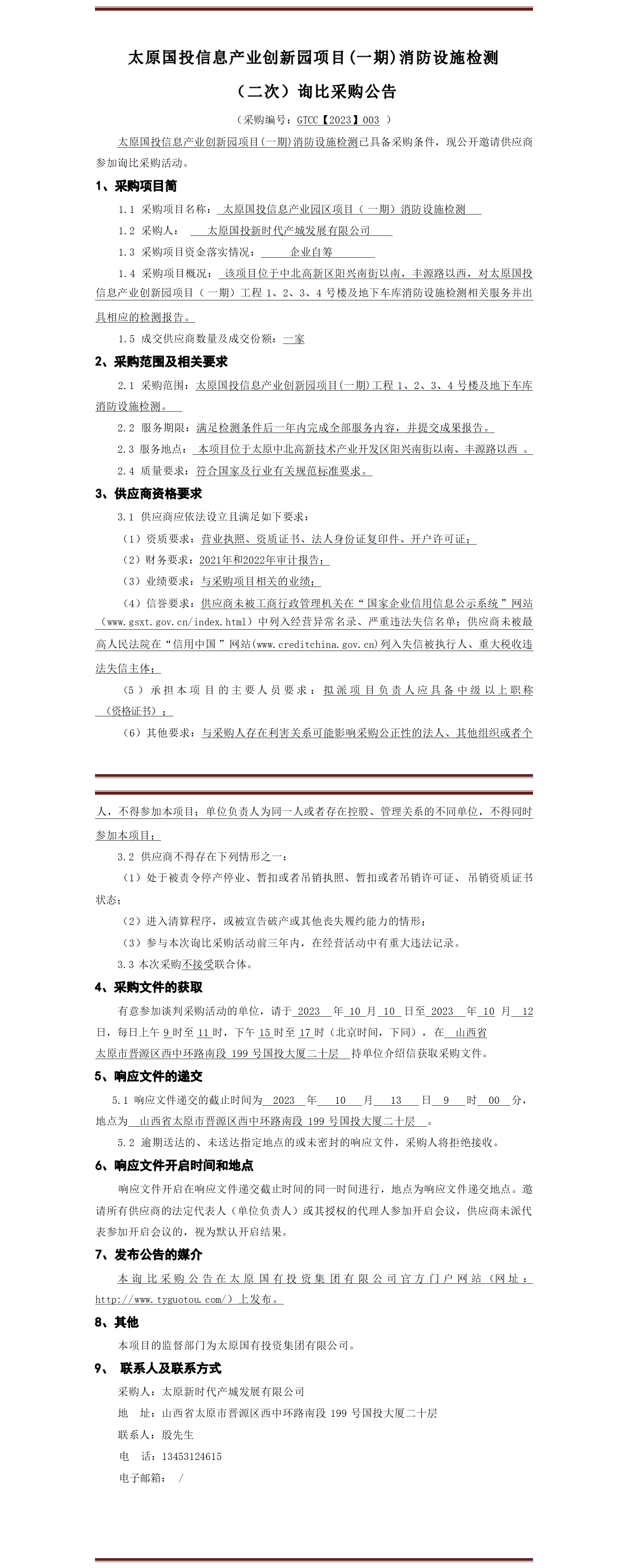太原國投信息產(chǎn)業(yè)創(chuàng)新園項(xiàng)目(一期)消防設(shè)施檢測 詢比采購公告