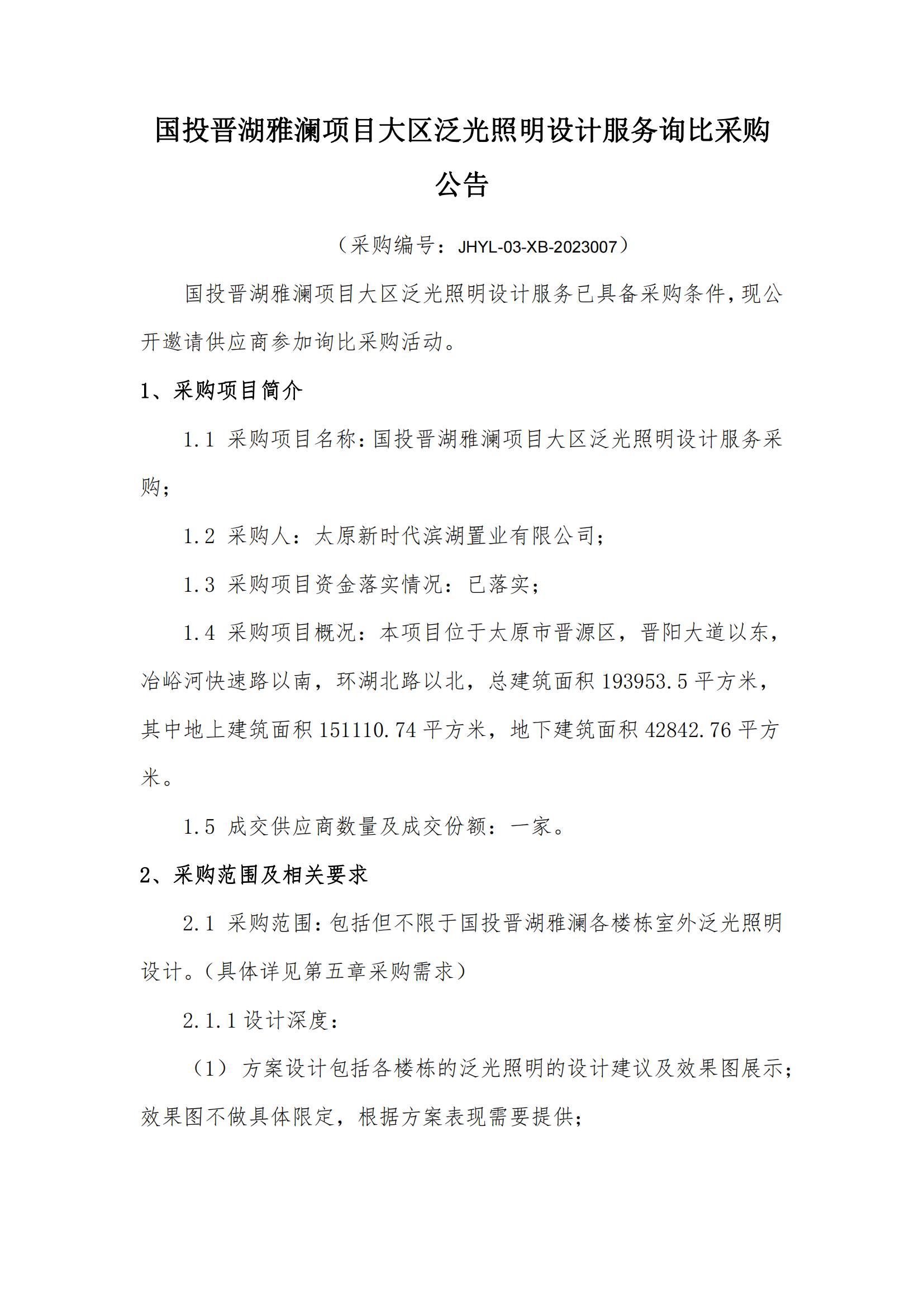 國投晉湖雅瀾項(xiàng)目大區(qū)泛光照明設(shè)計(jì)服務(wù)詢比采購公告