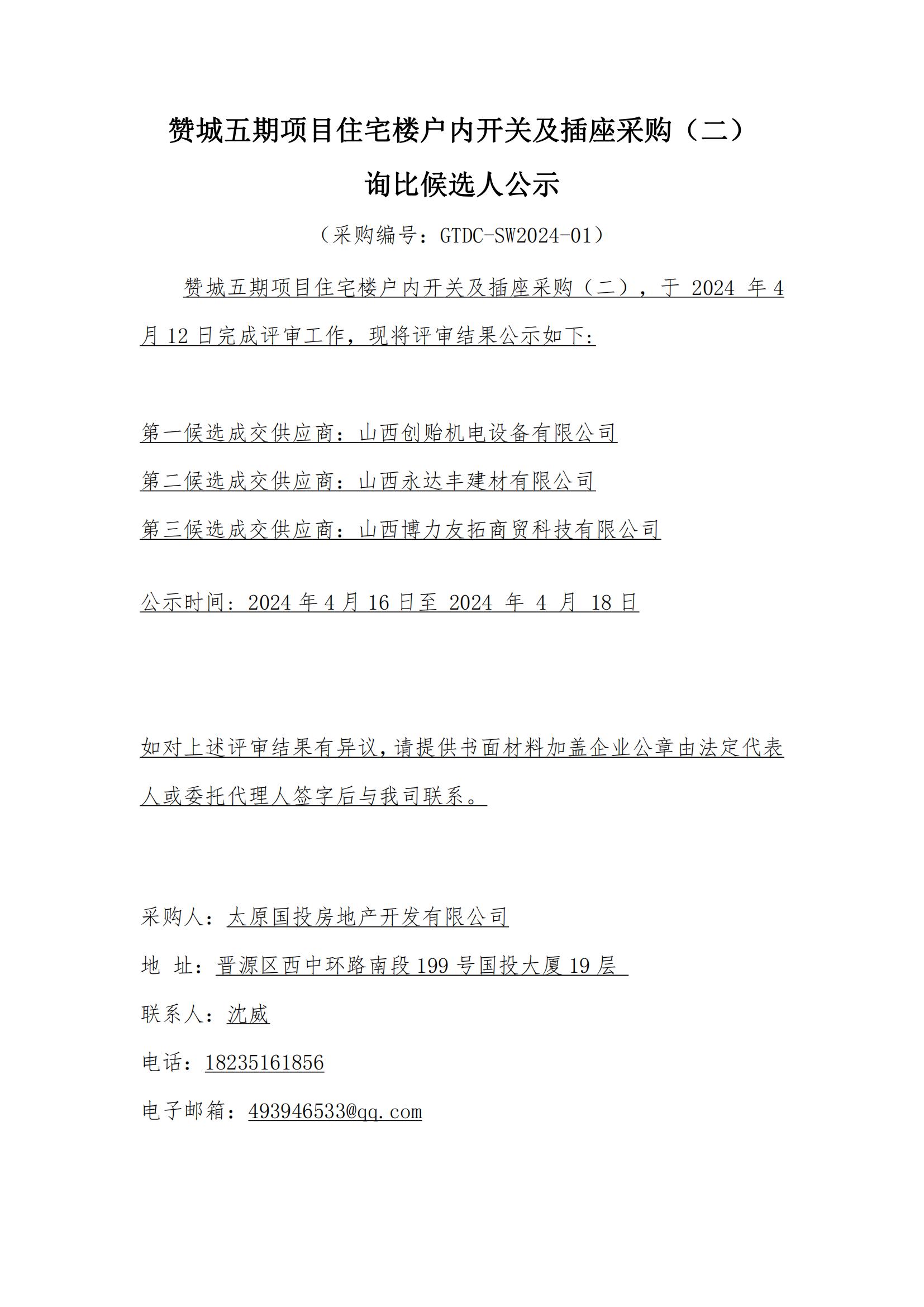 贊城五期項(xiàng)目住宅樓戶內(nèi)開關(guān)及插座采購(二)詢比候選人公示
