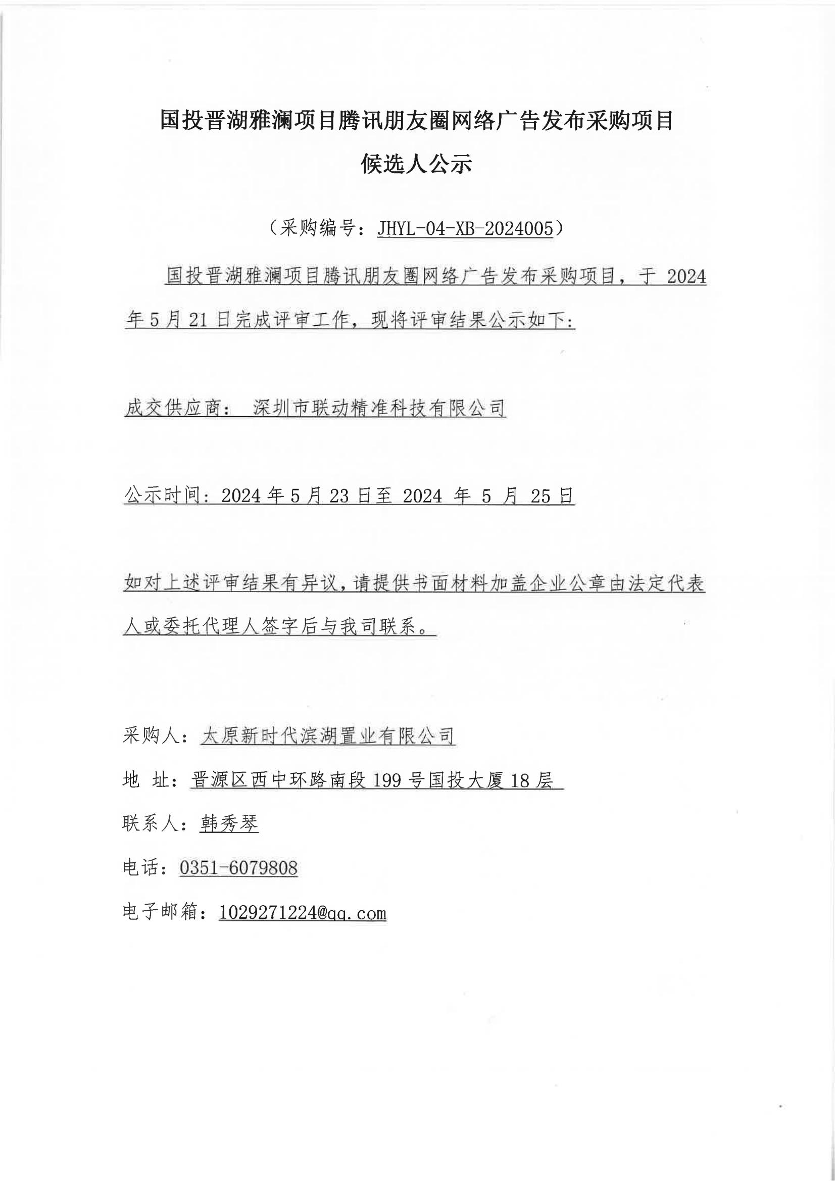 國(guó)投晉湖雅瀾項(xiàng)目騰訊朋友圈網(wǎng)絡(luò)廣告發(fā)布采購(gòu)項(xiàng)目候選人公示