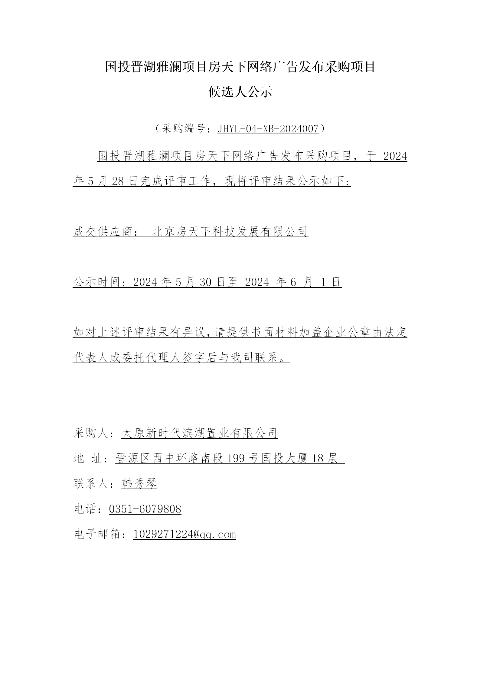 晉湖雅瀾項(xiàng)目房天下網(wǎng)絡(luò)廣告發(fā)布采購項(xiàng)目候選人公示