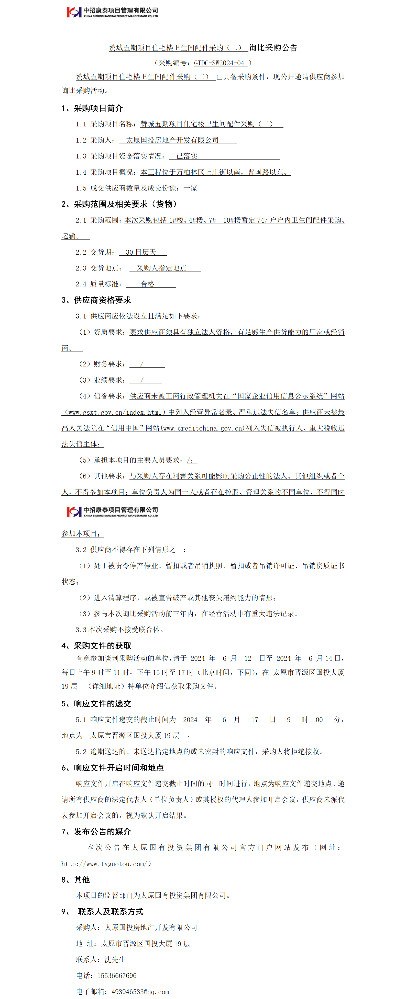 贊城五期項(xiàng)目衛(wèi)生間配件采購(gòu)(二)詢比采購(gòu)公告