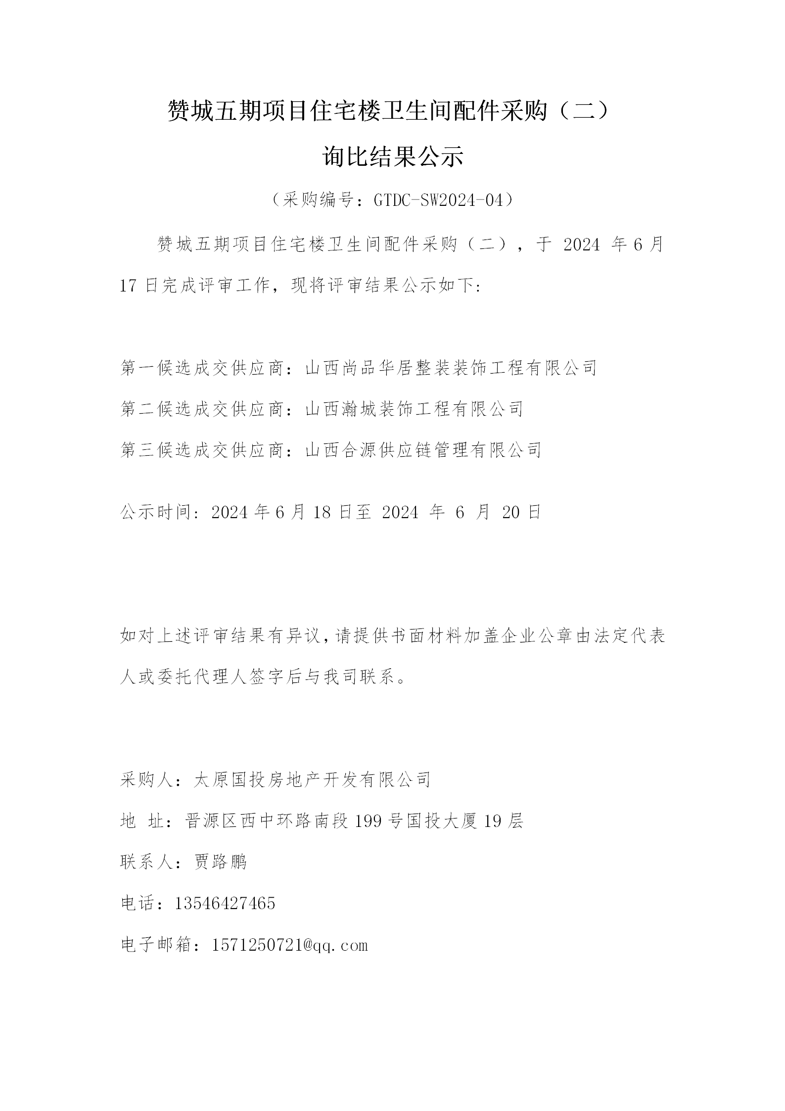 贊城五期項(xiàng)目住宅樓衛(wèi)生間配件采購(gòu)(二)詢比候選人公示