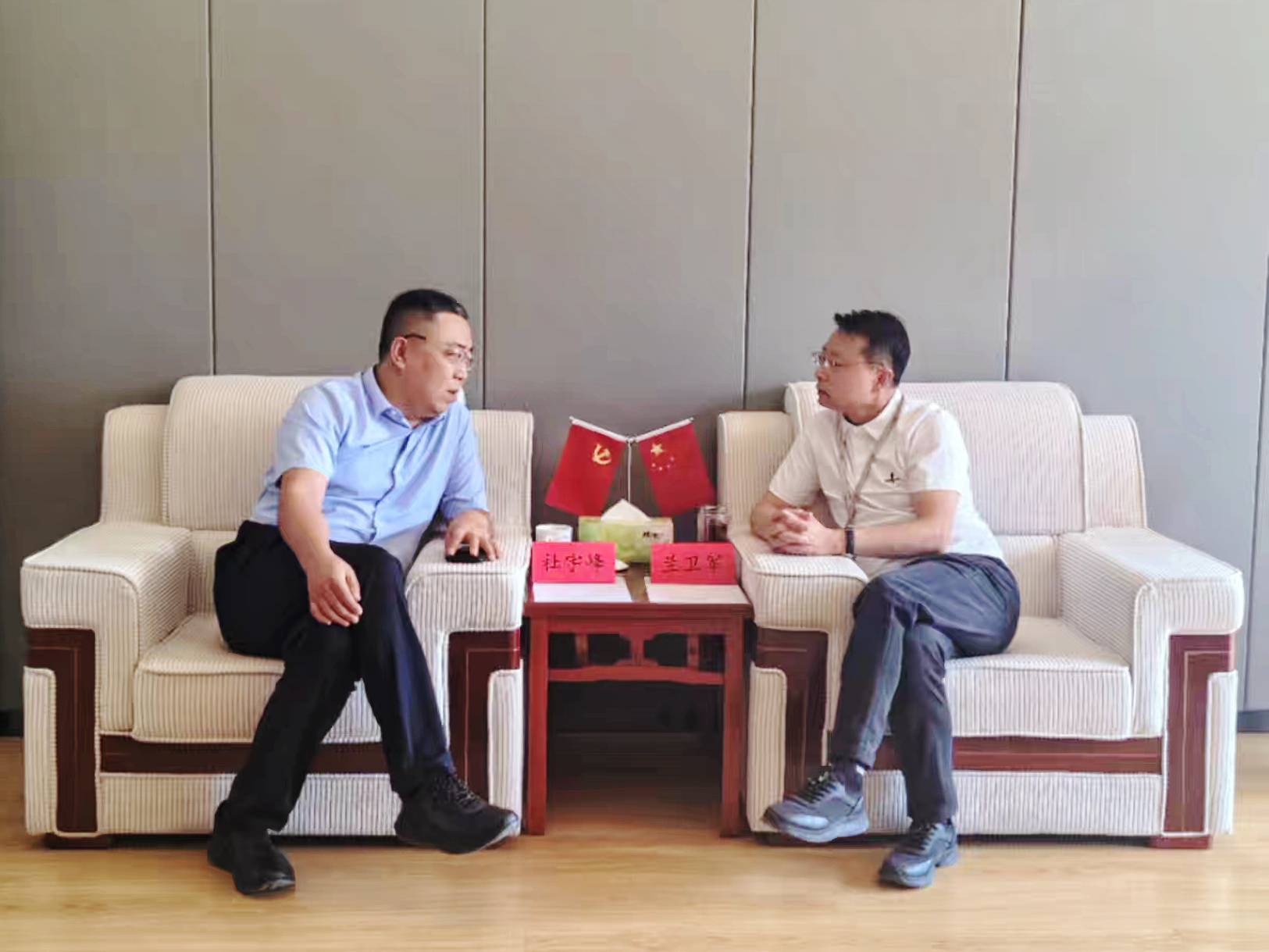 2024年6月19日,太原天然氣有限公司黨委書記、董事長杜宇峰一行到我集團座談交流,董事長蘭衛(wèi)軍帶領(lǐng)地產(chǎn)公司相關(guān)人員熱情接待來訪。