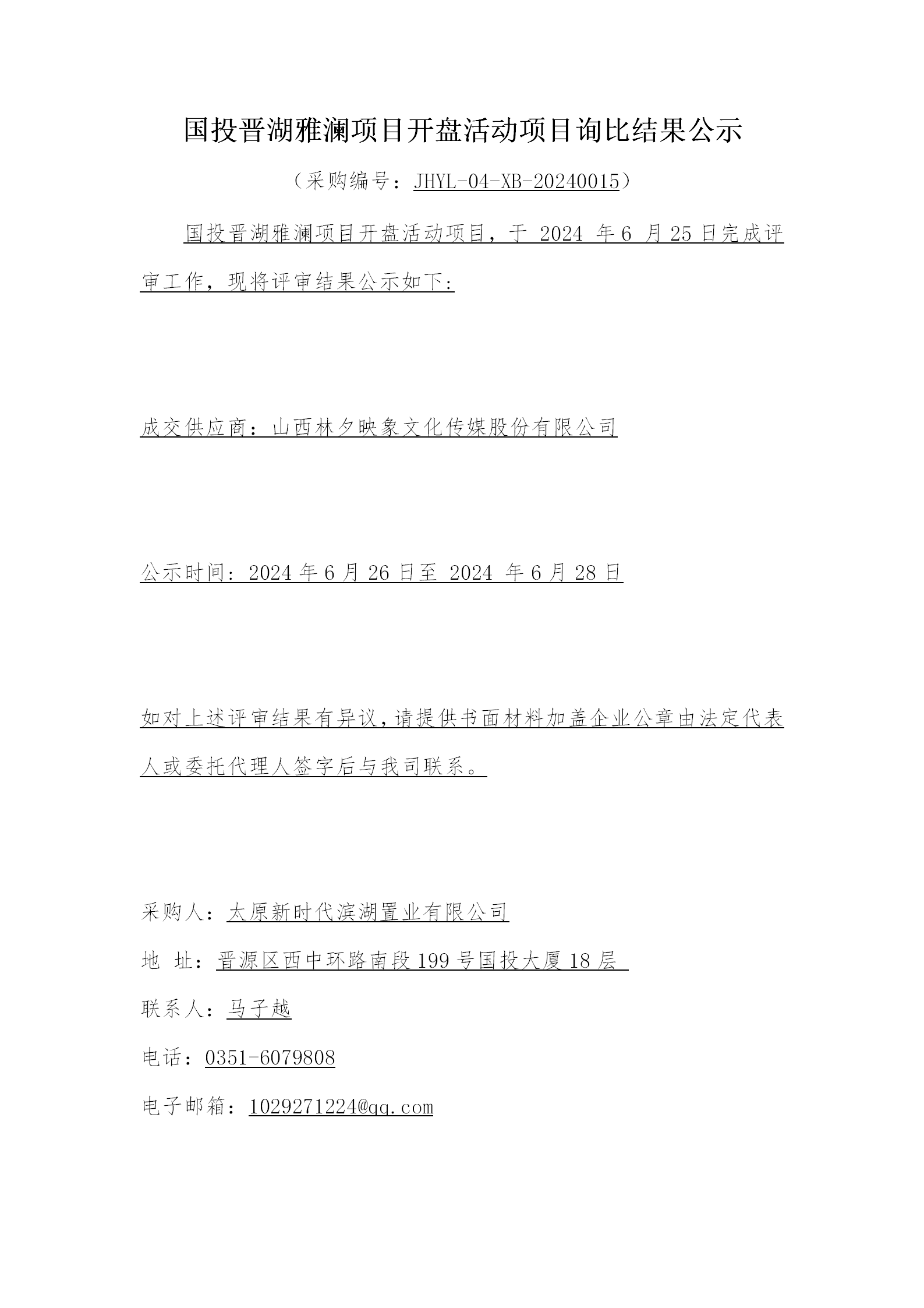 國投晉湖雅瀾項(xiàng)目開盤活動項(xiàng)目詢比結(jié)果公示
