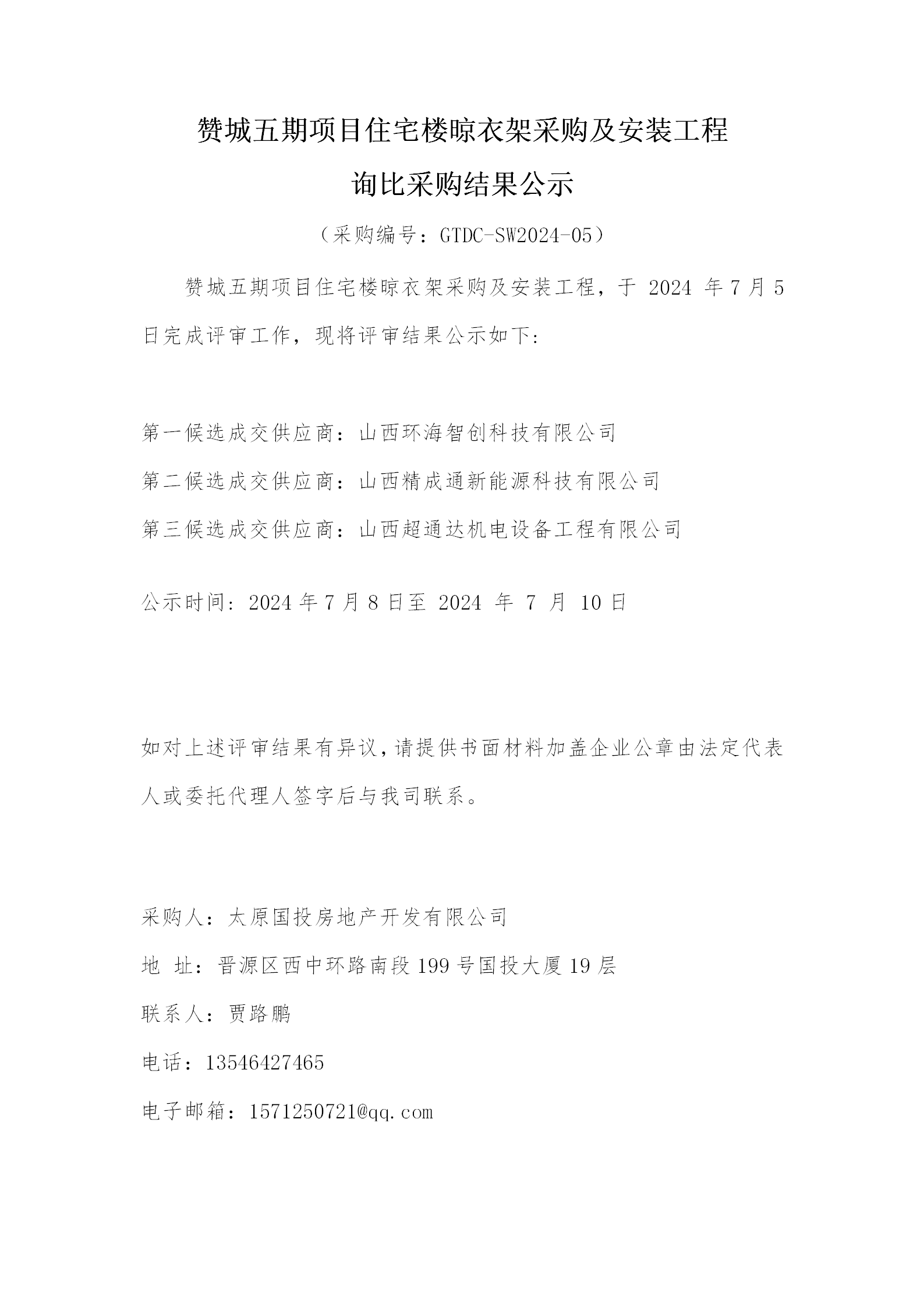 贊城五期項(xiàng)目住宅樓晾衣架采購(gòu)及安裝工程詢比采購(gòu)結(jié)果公示