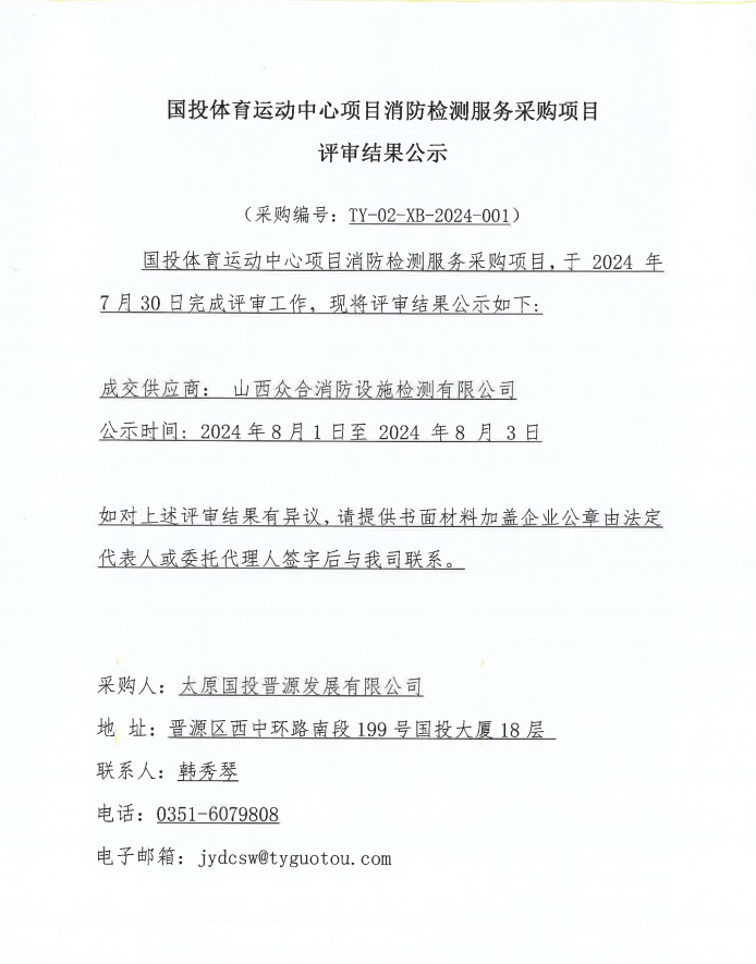 國(guó)投體育運(yùn)動(dòng)中心項(xiàng)目消防檢測(cè)服務(wù)采購(gòu)項(xiàng)目評(píng)審結(jié)果公示