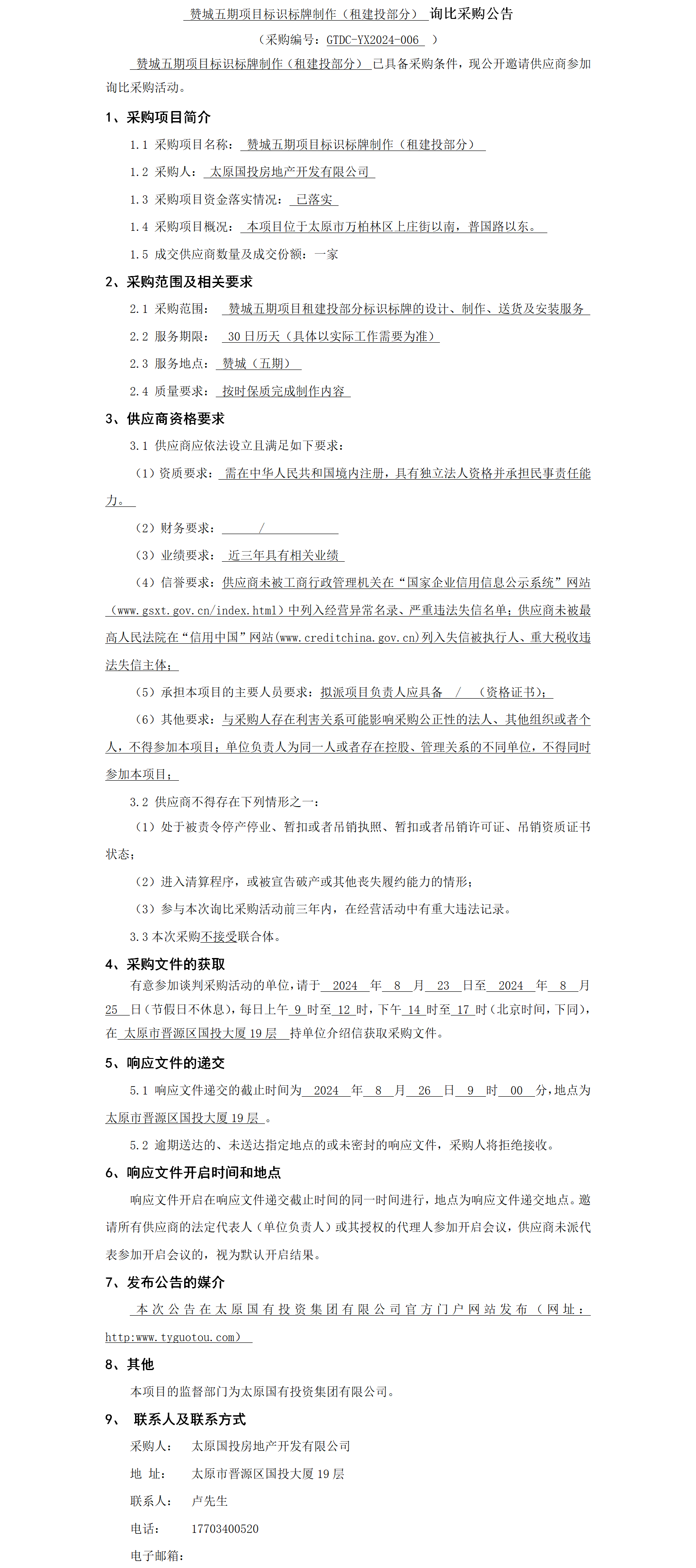 贊城五期項(xiàng)目標(biāo)識標(biāo)牌制作(租建投部分)詢比采購公告