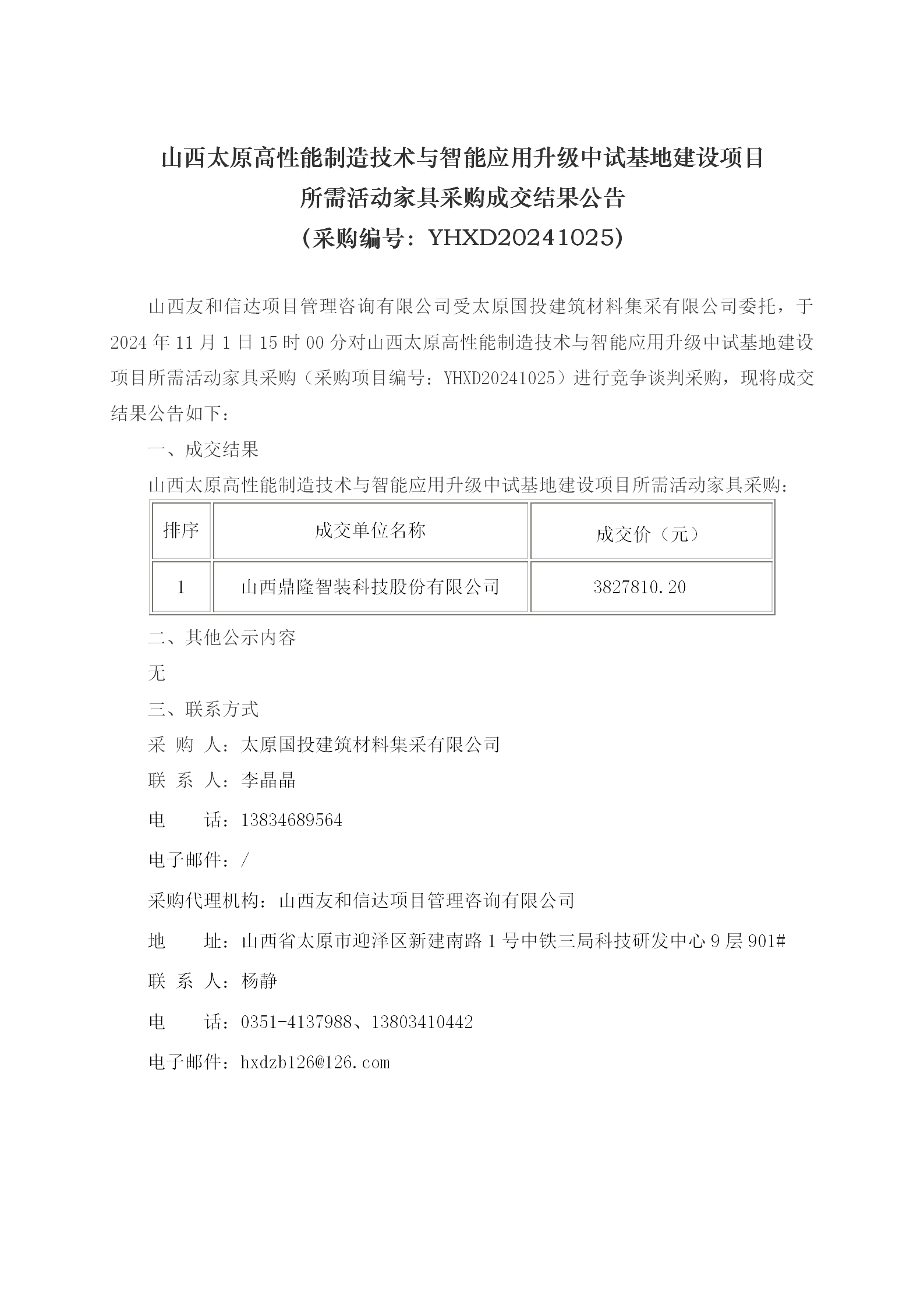 山西太原高性能制造技術(shù)與智能應(yīng)用升級中試基地建設(shè)項(xiàng)目所需活動家具采購成交結(jié)果公告