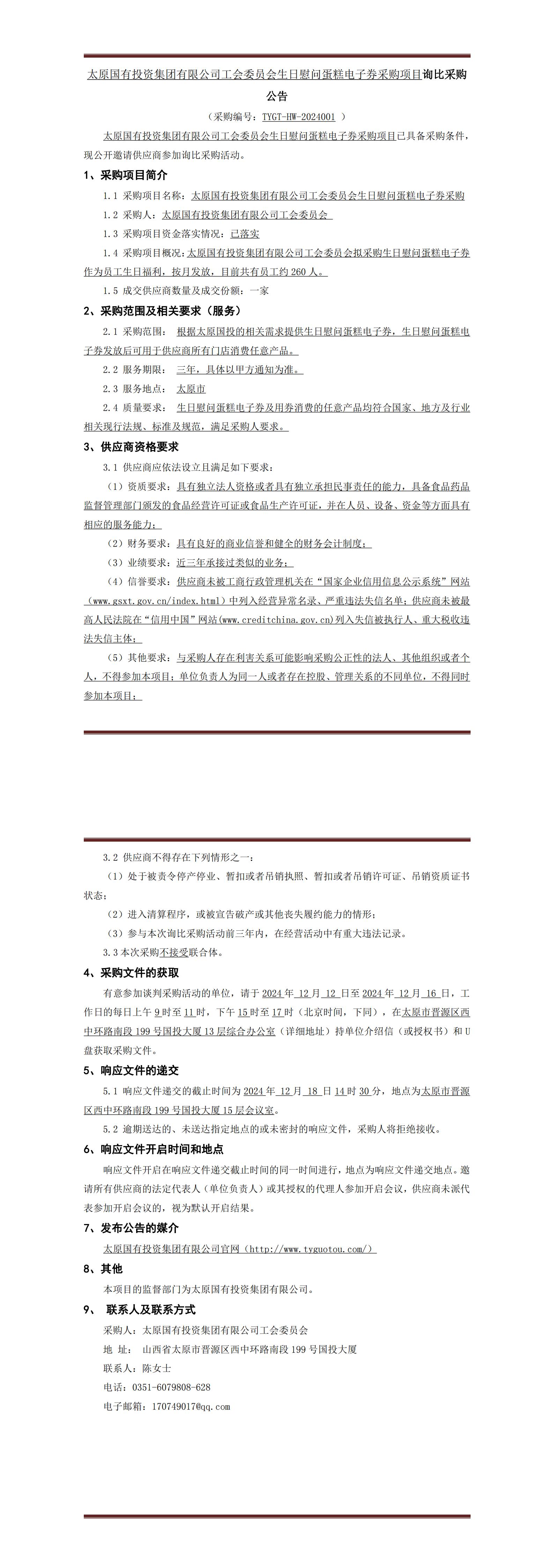 太原國(guó)有投資集團(tuán)有限公司工會(huì)委員會(huì)生日慰問蛋糕電子券采購(gòu)項(xiàng)目詢比采購(gòu)公告