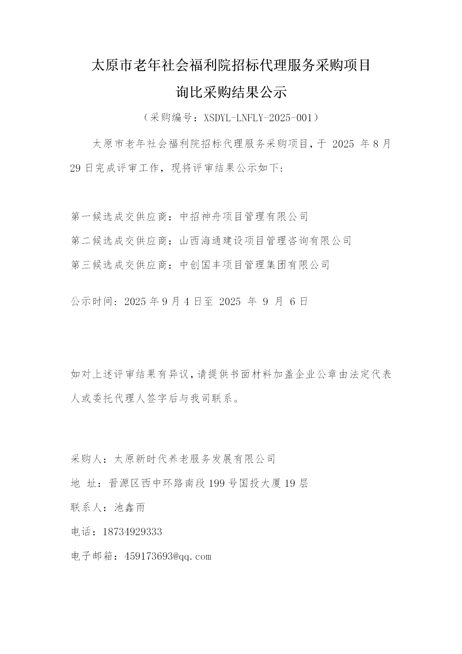 太原市老年社會福利院招標(biāo)代理服務(wù)采購項(xiàng)目詢比采購結(jié)果公示