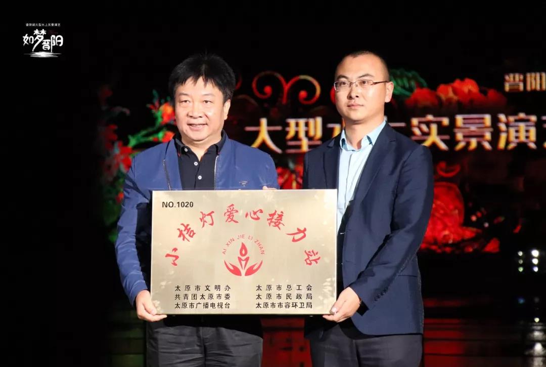 演出開始前,太原廣播電視臺音樂廣播總監(jiān)王玉軍為晉陽湖劇場頒發(fā)了小桔燈愛心接力站牌匾,晉陽湖劇場也成為了太原市第1020家小桔燈愛心接力站點。